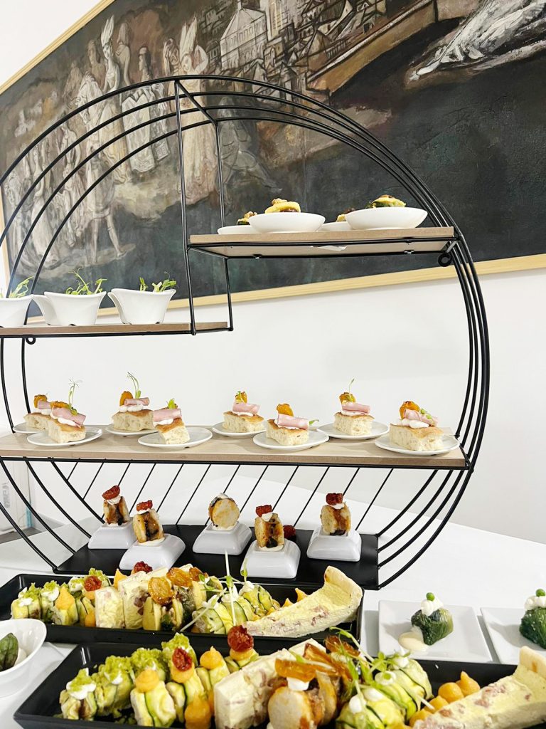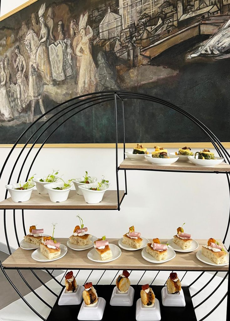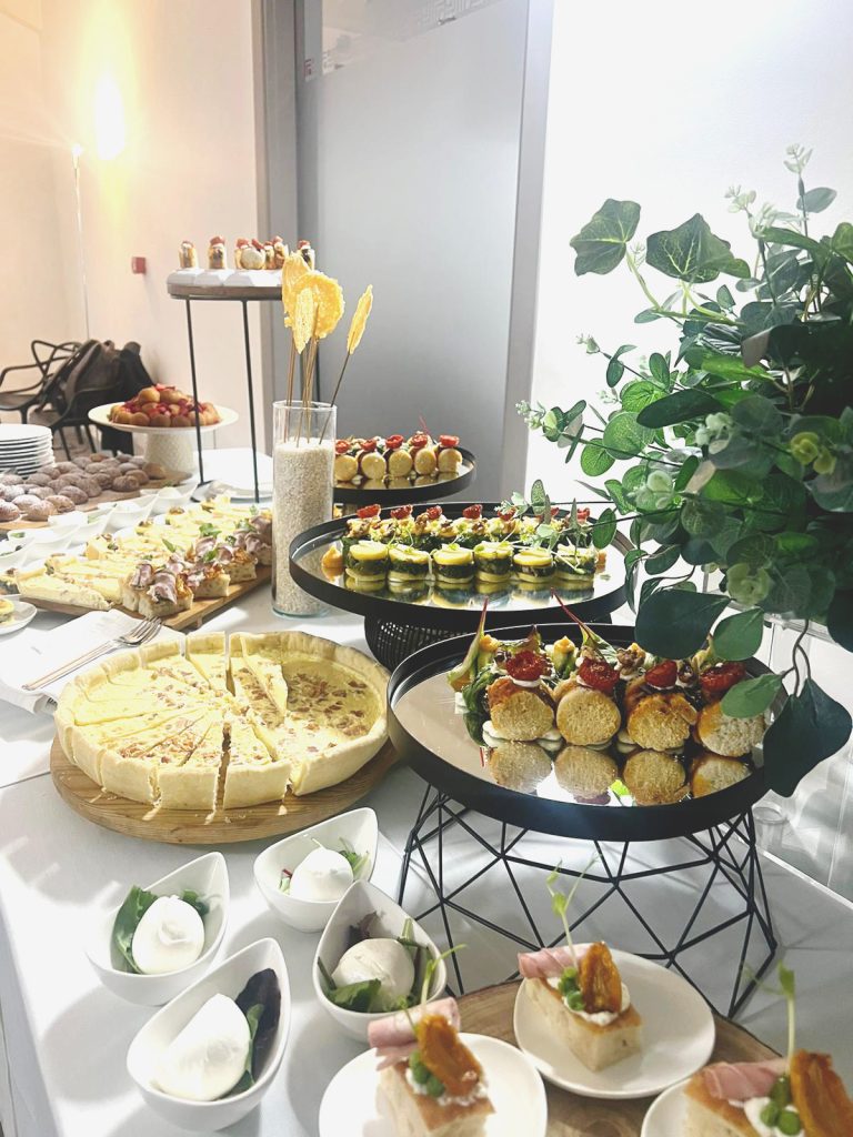 Annesso alla sala convegni vi è un ampio spazio dove è possibile allestire il convivio e dove ieri abbiamo servito light lunch e coffee break : su lunghe tavole avvolte in tovagliato bianco, con il supporto di le alzatine moderne e vassoi a specchio abbiamo offerto il nostro variegato spettacolo di finger food , una festa di colori e forme che hanno deliziato prima gli occhi e poi il palato. Come sempre sono fioccati i complimenti e la Stazione Marittima di Calata Porta Massa è entrata a far parte delle nostre business location!